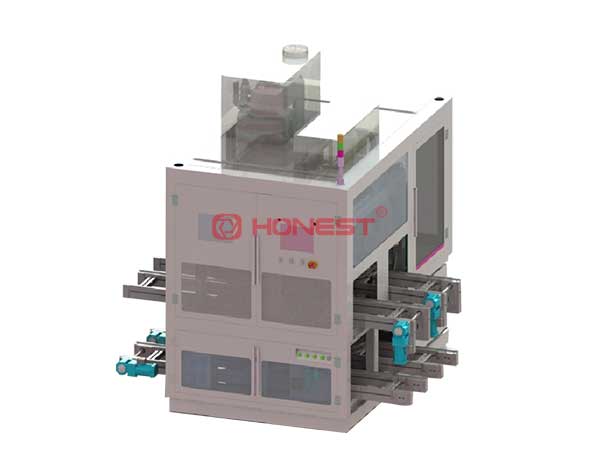 定子焊接機(jī)是對已插好線的定子進(jìn)行激光焊接的產(chǎn)線自動化設(shè)備、智能化程度較高,配套MES系統(tǒng),設(shè)備自動固定線頭,可實(shí)現(xiàn)自動裝夾焊接保護(hù)工裝,同時配置有清潔機(jī)構(gòu),有效防止焊接過程中飛濺污染到定子。焊接機(jī)的工序流程:定子托板流入→讀碼→防護(hù)治具鎖緊→自動激光焊接→防護(hù)治具松開→托板放行等。